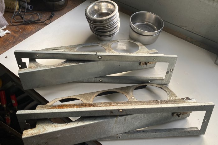Te koop. Twee 3 baks metalen voerplateau’s En 19 rvs bakjes. In 1 koop. €35,-
