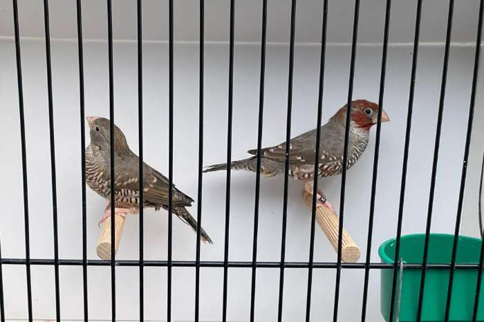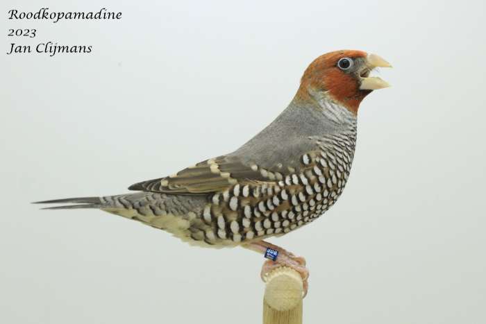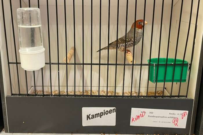 Mooi koppel roodkopamadine van 2025 uit de buitenvolière. Voor meer informatie: kevin.clijmans1@telenet.be