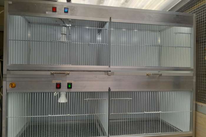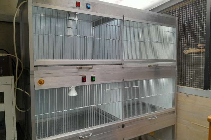 opfokkooi, in aluminium, zijwanden in a,c,p plaat , met ledvelichting en verwarmingslamp