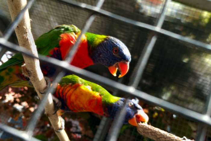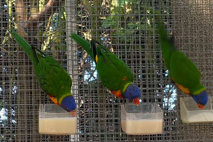 Lori van de blauwe bergen pop geringd 2025 zit in buiten volière redelijk tam kom soms op je hand zitten.