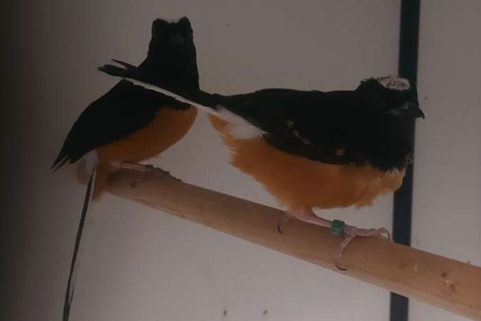 Te koop Koppel Witkruin schamalijsters. Man van 2022, pop van 2025. Beide vast geringd, onverwant en met dna!