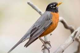 Amerikaanse roodborstlijster/Robin. Pop te koop of man gevraagd. Goed gering en met DNA. De vogel is van 2025 en zit buiten.