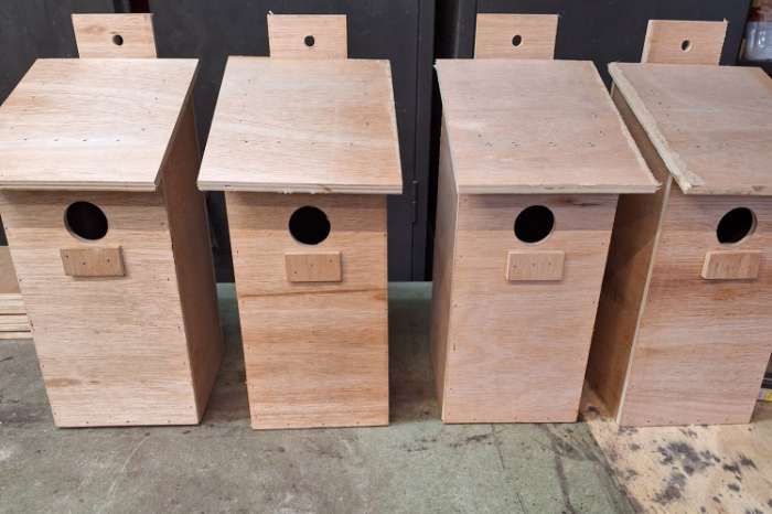 Nestkasten voor mezen, mussen, boomklever, boomkruiper, spreeuwen, roofvogels, siereenden, enz.... alle kasten zijn behandeld met bioline carbonile een biologisch product niet schadelijk voor mens en dier, plaats de nestbakken in de winter deze periode zoeken zij hun nestkasten voor het komende broedseizoen, kasten vanaf 7 € p/stuk