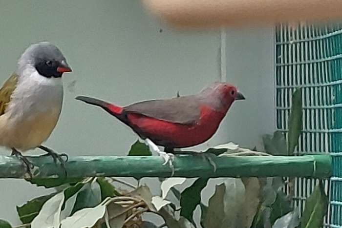 nog één koppel (verwant) 2025 geringd donkerrode amaranten. Broedrijp