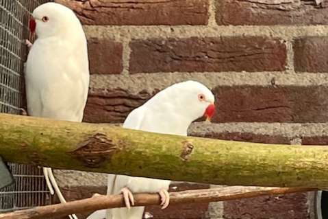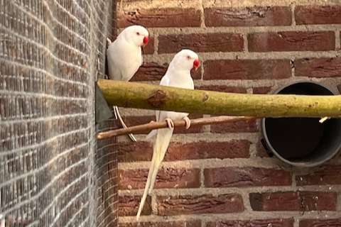 Mooi koppel Albino Halsbandparkieten. Onverwant uit 2021. Goede forse vogels.