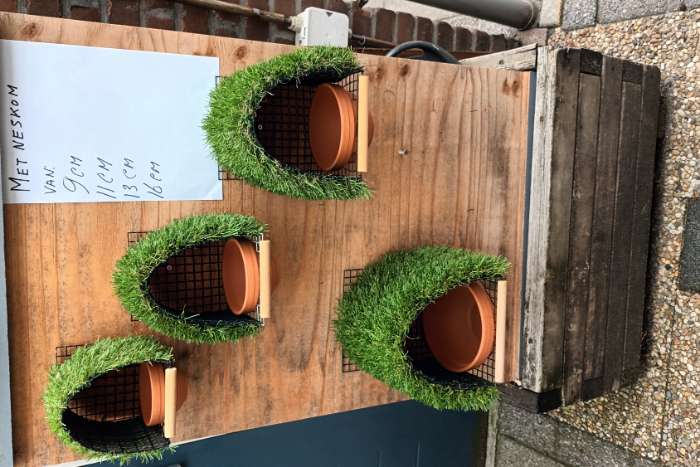 Natuurlijke uitstraling broednestjes voor Europese en Tropische Kanaries en overige vogels kunnen elk jaar opnieuw gebruikt worden met stenen nestbakjes van 9cm diameter 9,00 euro per stuk, en 11cm diameter prijs per stuk 10,00 Euro. Ook grotere nestkasten te koop met nestschalen van 13cm prijs 12,50 euro of 16cm diameter voor Goudvinken en Pestvogels Kardinalen kleine duiven Nachtegalen Groenlingen Putters Geelgorzen enz. Verzenden naar u adres is mogelijk.