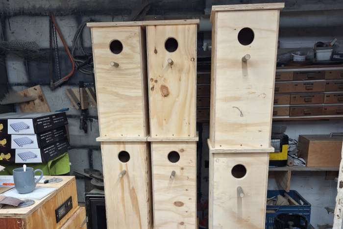 Nestkasten voor mezen, mussen, boomklever, boomkruiper, spreeuwen, roofvogels, siereenden, enz.... alle kasten zijn behandeld met bioline carbonile een biologisch product niet schadelijk voor mens en dier, plaats de nestbakken in de winter deze periode zoeken zij hun nestkasten voor het komende broedseizoen, kasten vanaf 7 € p/stuk