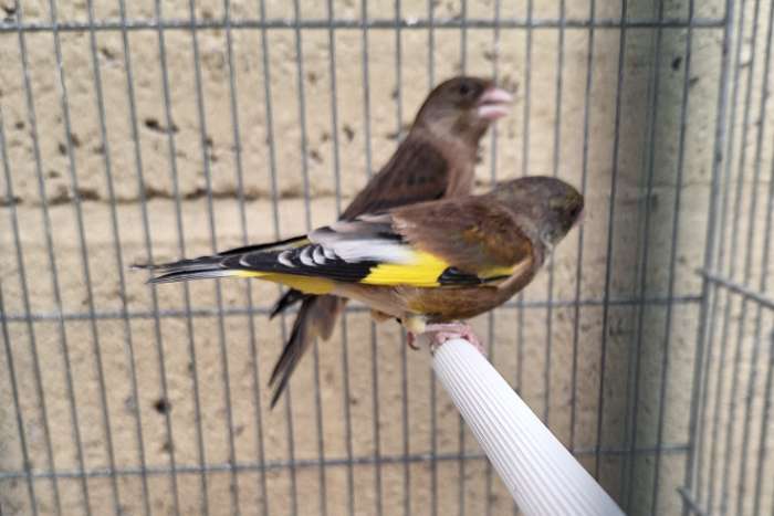 Onverwant koppel wildkleur Chinese groenlingen van 2025. Kwekersnummer AL 008.