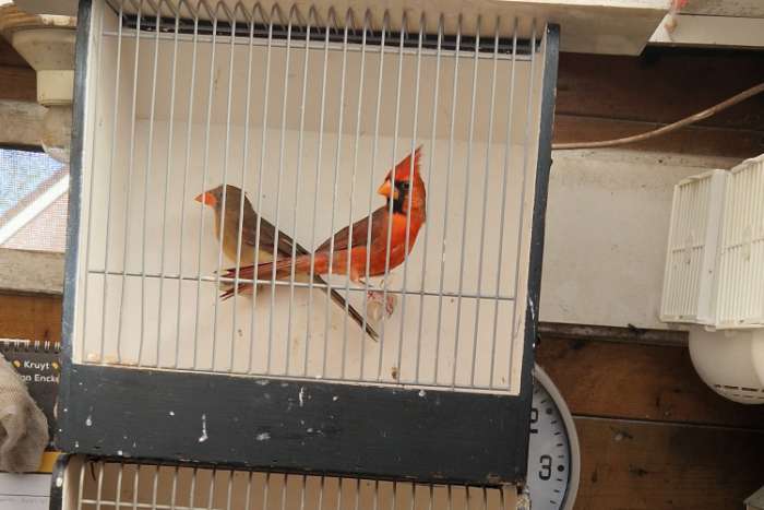 2 mooie onverwante koppels kardinalen. Vast geringd. 1x 2024. 1x 2025.