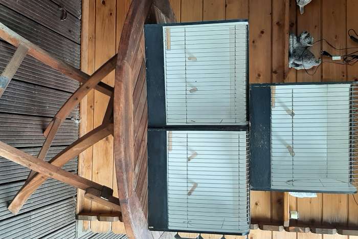Te koop 17 universeel tt kooien met drinkflesjes en voerbakjes. Meeste zijn direct te gebruiken voor tt, paar voor trainen.