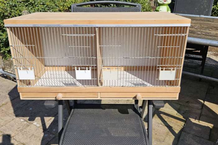4 dubbele vogelbroedkooien met ledverlichting en uitschuifbare lades Afmetingen per kooi zijn 80 x 40 x 40 cm. middels een tussenschot te splitsen in 2 x 40 x 40 x 40 vraagprijs 50 euro per stuk Alle 4 samen voor 150 euro.
