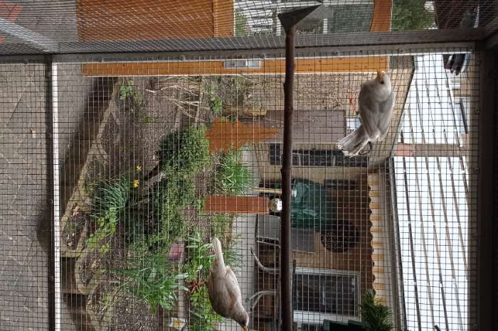 Vögel befinden sich n der Voliere