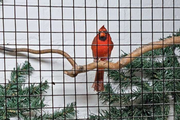 Rode kardinaal man geringd 2025. Vogel heeft helaas een krom pootje. Verder is hij gezond. Bieden vanaf €50