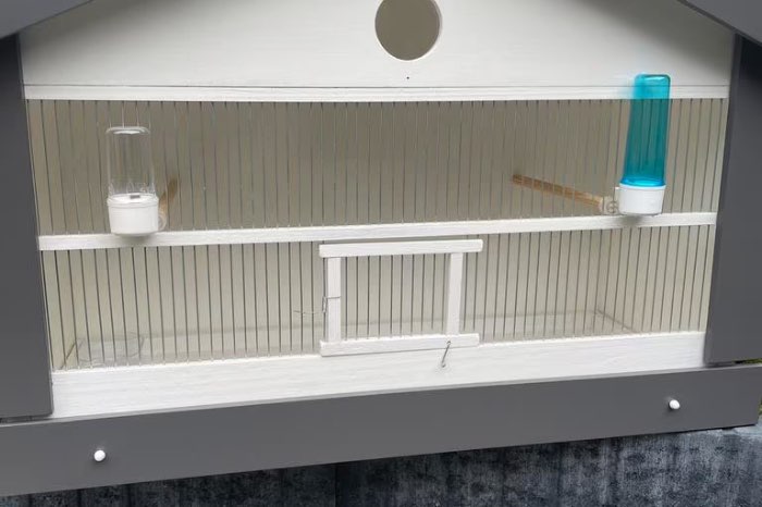 Mooie en degelijke lijsterkooi zangvogel kooi geheel in nieuw staat,weersbestendig.Afmetingen binnenkant kooi zonder overstek 80 cm breed,65 cm nokhoogte en 28 cm diep.