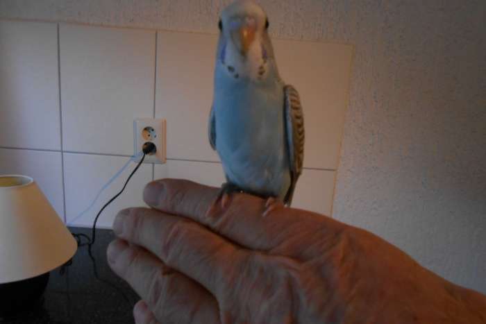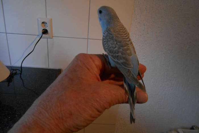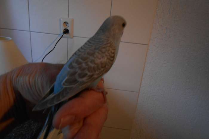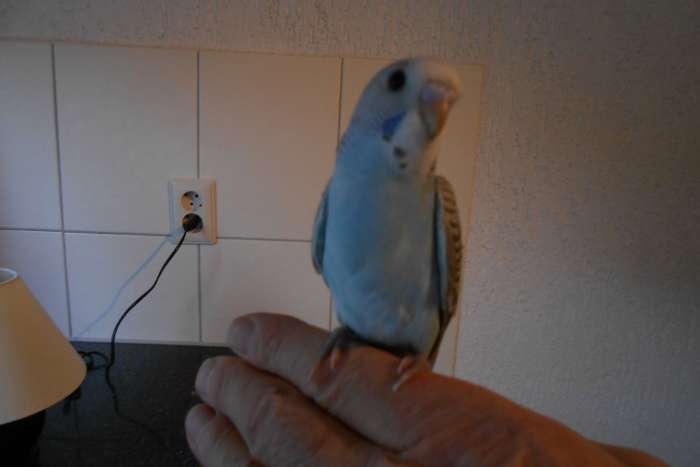 De foto's van dit zevende (uit het broedblok gekomen) parkietje zijn zojuist gemaakt.