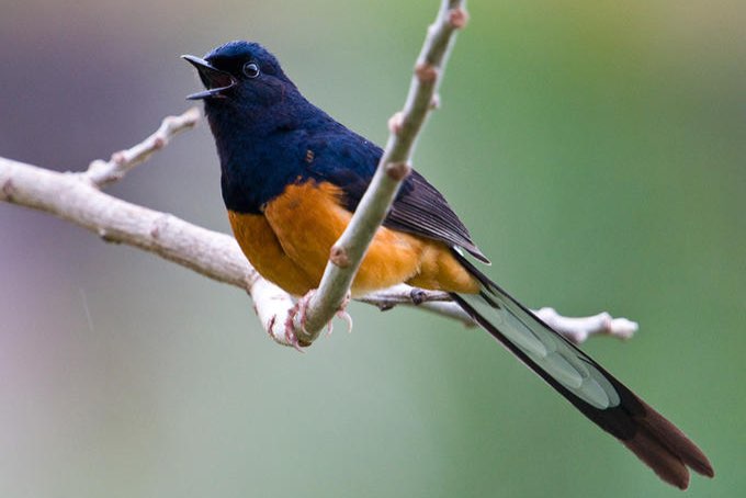 1-0 Schama lijster ( Copsychus malabaricus) geringd 2022 met mooie staart en zeer goede zang