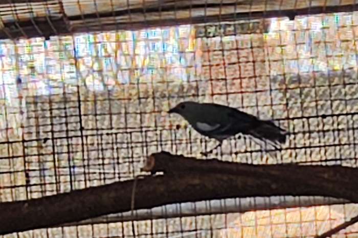 Man blauwgrijze witschoudertangara van 2018 Hij is aan het nest bouwen, maar de pop is dood