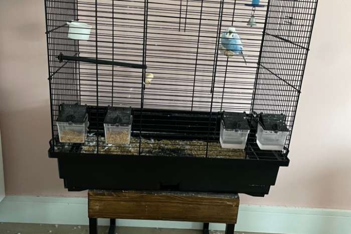 gratis op te halen mooie man grasparkiet met kooi.beide 3 jaar oud.