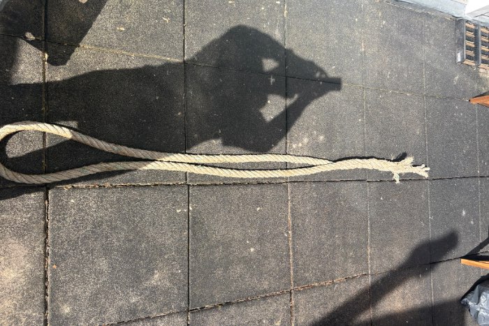 Zit een lus in, lengte van lus is 1,5M. Totale touwlengte is 3M.