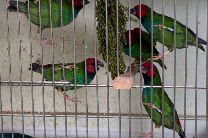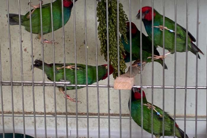 We hebben nog enkele onverwante paren Peales papegaaiamadine beschikbaar. De mannen zijn geringd '23 en de poppen '24/'25.