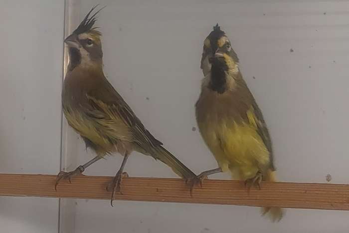 Te koop mooi koppel groene kardinalen van 2025. Correct geringd, onverwant en in perfecte conditie.