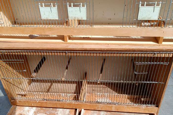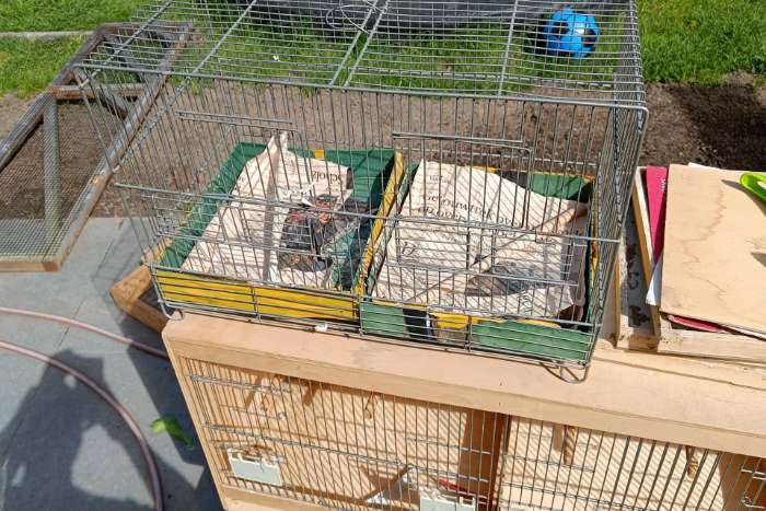 Grote kooi: L 121 cm x H 40 cm x D 30 cm – € 25,-