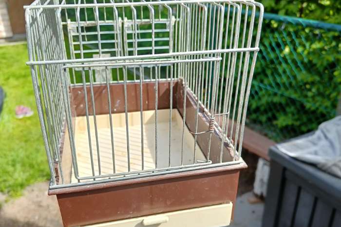Middelgrote kooi: L 81 cm x H 40 cm x D 30 cm – € 20,-