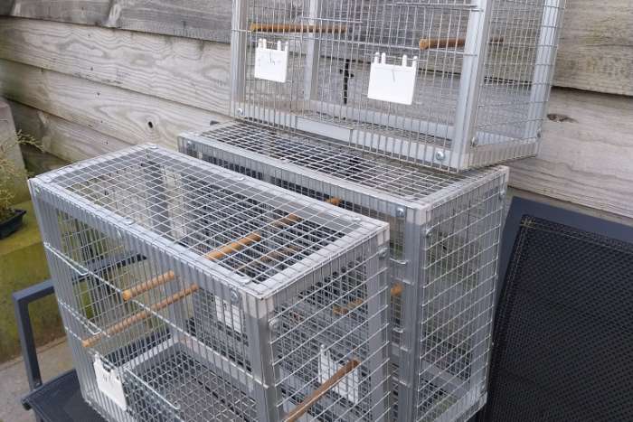 3 mooie aluminium vogel kooitjes om een man even apart te zetten in de volière als de pop zit te broeden. Erg makkelijk en ze kunnen elkaar zien en horen zodat de pop in alle rust de eitjes kan uitbroeden. Afmetingen 50 cm breed, 40 cm hoog en 20 cm diep. Aluminium met voorfront. Alleen bij een redelijk bod krijgt u een reactie.