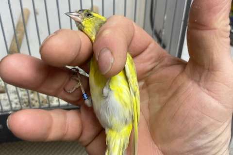Wegens plaatsgebrek een koppel silice sijzen, dominant geel. Man is van 23 en pop van 25. Goed geringd en gezond. Kweeknummer 3FMZ.
