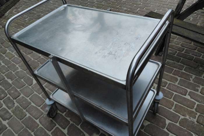 Roestvrijstalen voerkar 85 x 50 x 95 cm hoog , ophalen 40 euro.