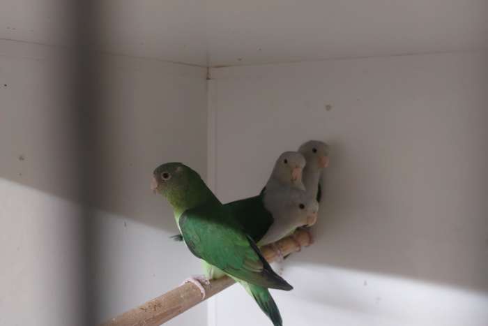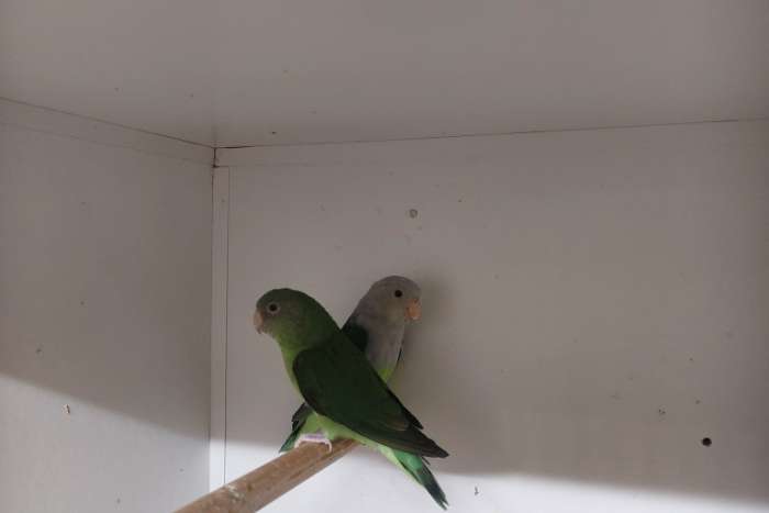 Aangeboden een wat ouder koppel agapornis cana's en 2 mannen